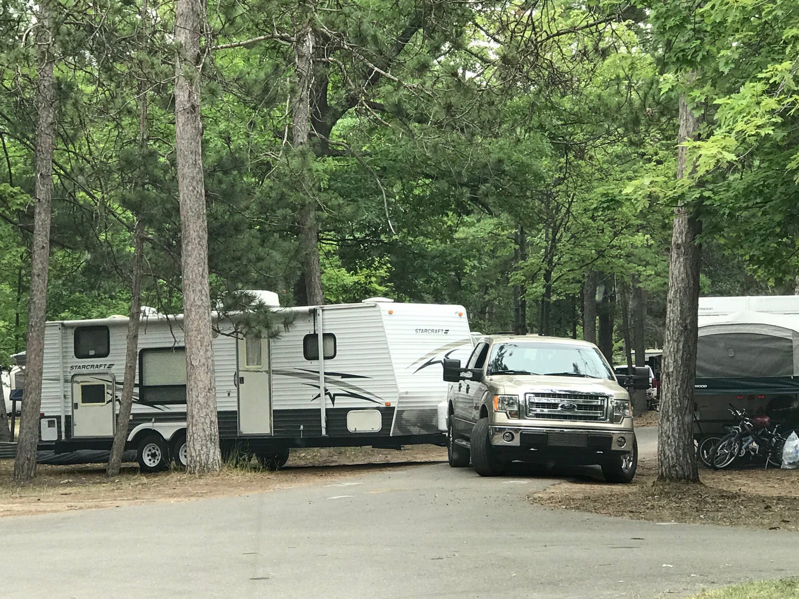 Every time we visit we stay at Traverse City State Park. We have camped in our tent the first two times and the third time has been with our new rig. Check out our blog post about parking the rig if you are looking for a laugh.