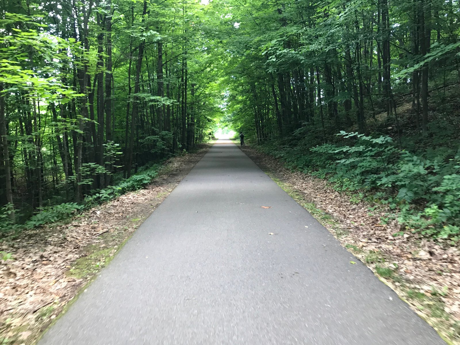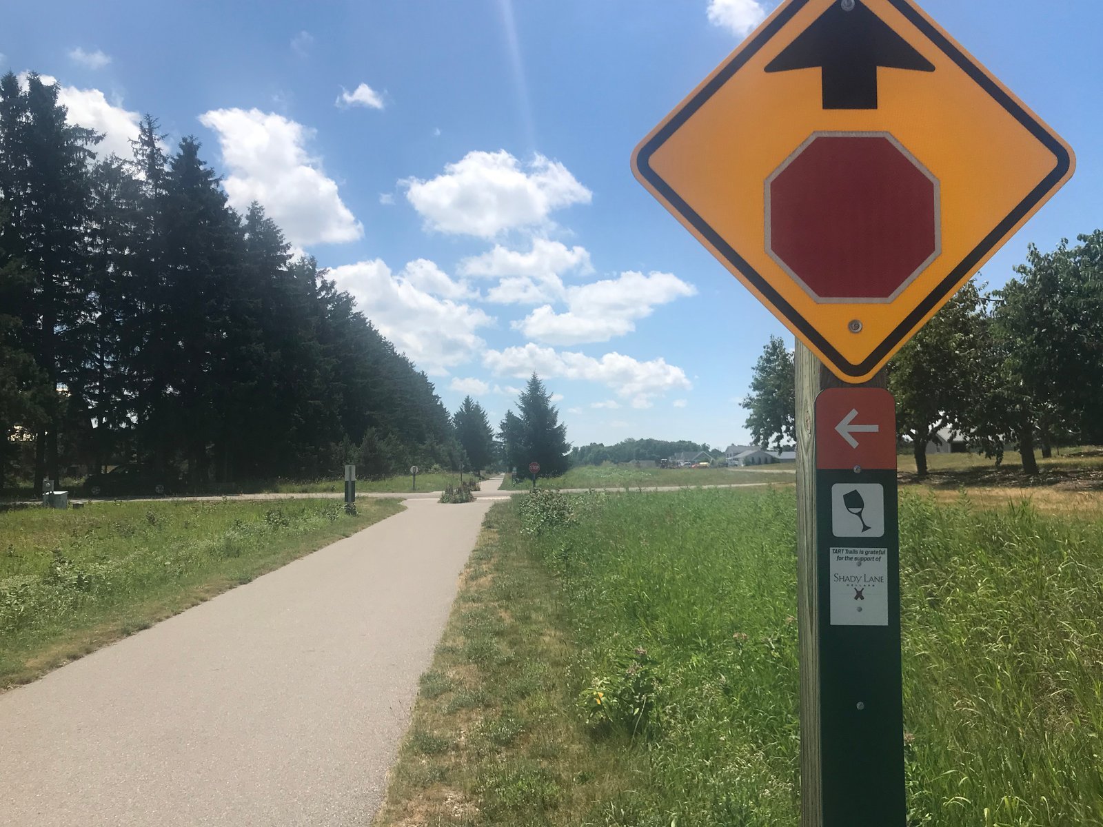 On Sunday we were itching to bike because it had been two weeks since we had gotten any real cycling in. From our campground Suttons Bay on the Leelanau peninsula is 21 miles. The Leelanau trail is 17 miles so you are on the TART trail for the 4 miles. We weren’t too confident in our abilities to ride there and back because we haven’t been biking a lot lately and it was going to be a hot day. Therefore, we opted to use their bike-n-ride program. We parked our truck at a bus stop, rode 17 miles to Suttons Bay, wandered around, and when we were ready to leave we put our bikes on the bus and we rode back to our truck. This made for a gorgeous day of riding and enjoying the quaint little town of Suttons Bay!